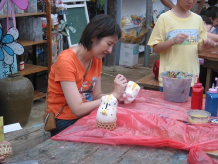 在新屋花海農業休閒園區裡有許多類型的DIY讓大家們發揮創意,有彩繪小豬、杯子 ,還有貝殼像框、砂畫、
