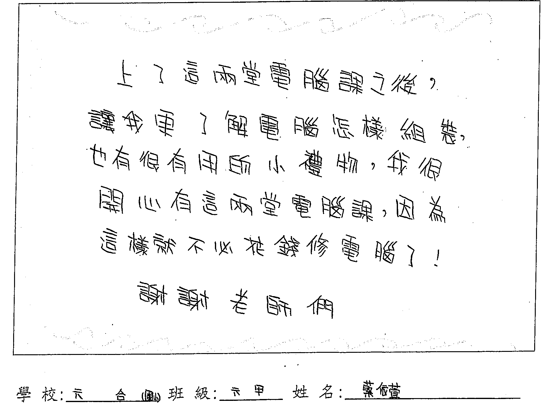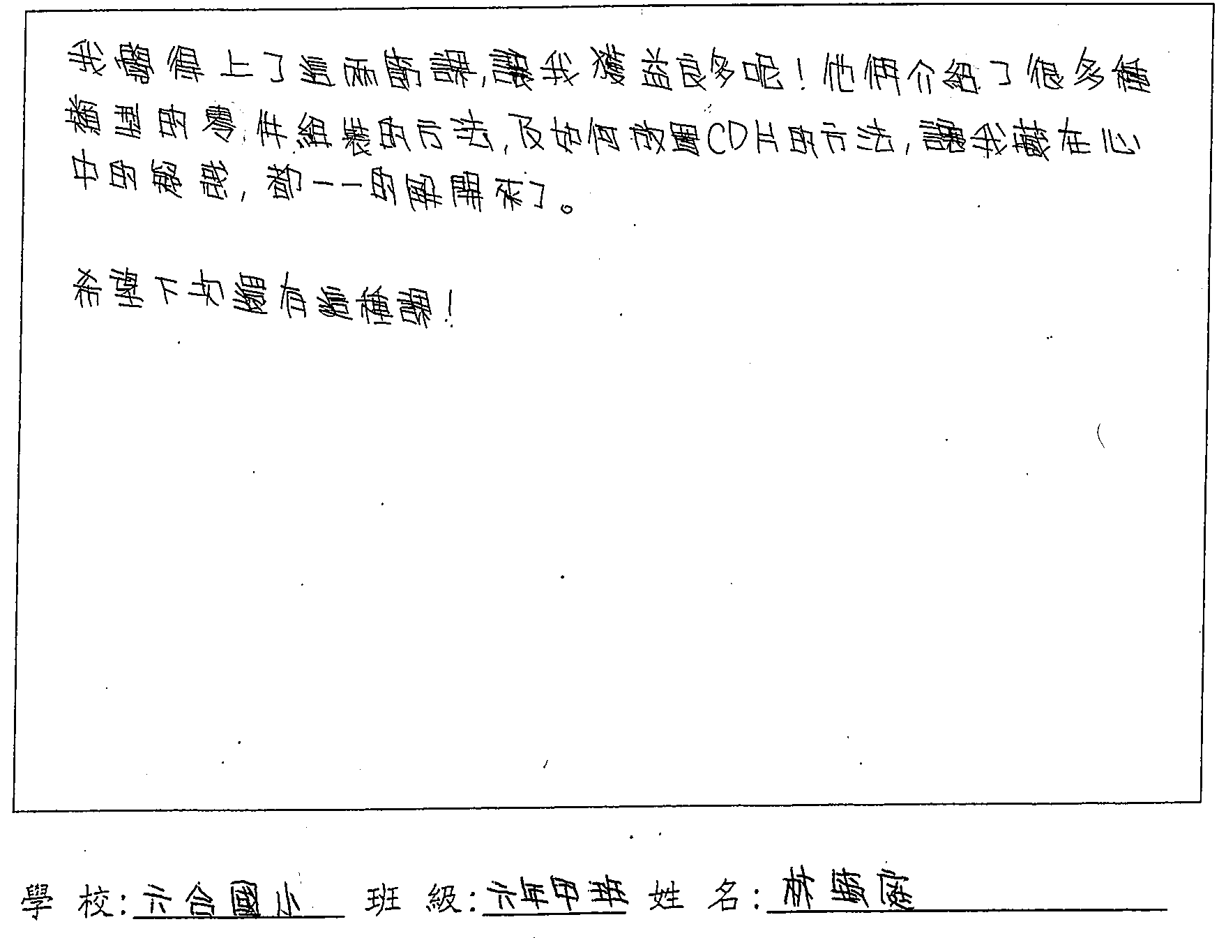 今天來到了苗栗縣頭份鎮的六合國小,上午的班級是六年甲班,大家認真