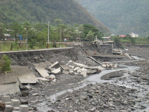 溝通二地的大水泥橋,可是現場連一點點的遺跡都找不到。這次風災造成無情的走山、河流的改道、