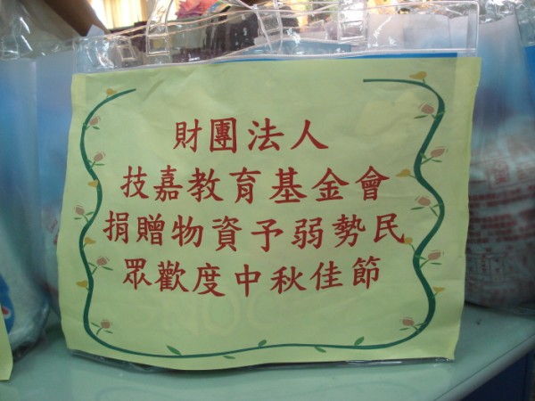 中秋節前夕,技嘉教育基金會關懷平鎮市弱勢族群,特別購買5公斤裝國王米420包,泰山紫米薏仁粥420箱並於9月29日由市長陳萬得代表受贈,再由陳市長轉贈給列冊低收入,場面溫馨。 |