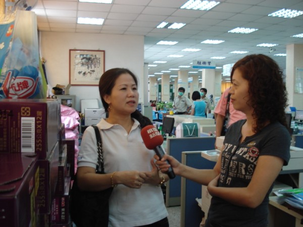 基金會周麗華協助民眾領取物資