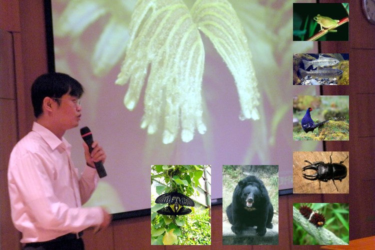 你知道嗎?夏季時海拔高度平均每上升100公尺,溫度會降低多少度嗎? 一開始講師以問題來吸引同仁的專注力,並藉著互動式的問答題目進而讓大家了解台灣高山在台灣生態中所扮演的重要角色並開始介紹這片美麗的寶島台灣。 台灣全島面積約36,000平方公里,海拔1,000公尺以上地區佔全島土地總面積32%,超過三千公尺以上高山總計有220座,屬於熱帶氣候的北緣與溫帶氣候的南緣,冰河時期是歐亞大陸生物南遷的避難所,與大陸板塊分離後,冰河期的寒溫帶樹種因此向山區退縮,氣候的長期安定並且高山聳立,提供眾多物種在中高海拔生存的條件,北方南下的親潮和南方北上的黑潮,同樣挾帶各式各樣的動植物來島上落腳,這些得天獨厚的自然條件讓台灣生物的種源非常龐雜。 台灣就是一個北半球的縮影,北半球可以看到的地形氣候,台灣幾乎都看的到,我們想接近山、接近海洋、甚至離島,都相當容易,這可是讓很多國外的人士羨慕不已呢。 | ||