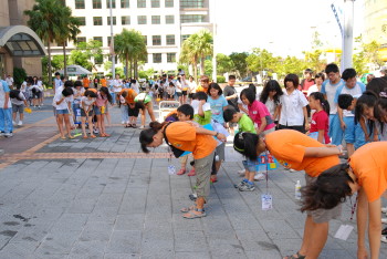 可愛的二位主持人,帶領大家練習口號『您好!歡迎光臨』