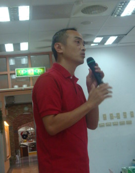 上台致詞,感謝所有參與捐助及幫忙的單位或個人。