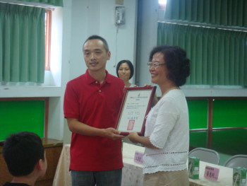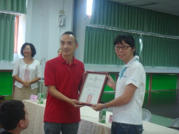 技嘉科技代表黃惠雲小姐、家長會長蔡珀玩女士..等協助單位,接受學校的感謝狀頒贈