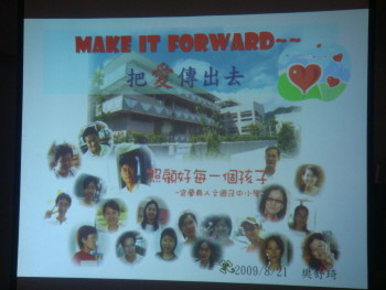 學校藉由影片播放讓現場的朋友們了解整個火災及重建的過程,也召集小朋友們一起來參與盛會