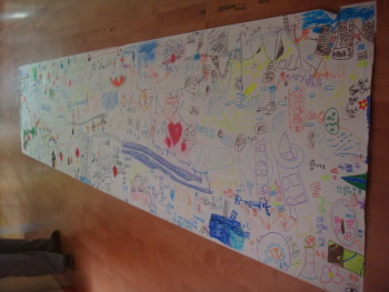 沒有限制孩子們可以盡情的揮灑、無限的想像,今年遇到八八風災這麼大的災難,老師們藉由這個主題