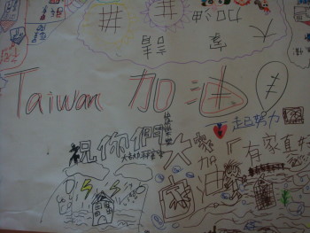 給小朋友機會教育,並引導他們為災民們祈福、為台灣加油!