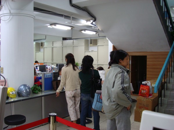 | 民眾由許明富課長手上接過技嘉所贈的紅包及物資 |