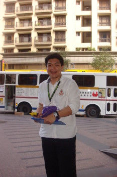 許多同仁尚未在北部地區捐過血,正認真的在填寫基本資料, 這次出動了兩台捐血車並派了許多捐血中心的同仁來為捐血的同仁服務, 所以捐血的速度相當迅速,這次也看不到太排長龍的景象囉。 | |