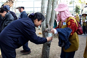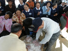 八八水災受災鄉親,齊聚在園區由漂流木興建起富有原民文化的「希望廣場」,由原住民鄉親搗麻糬,漢人鄉親「搓」湯圓,象徵「麻吉」大團圓,族群融合在「杉林」。 |