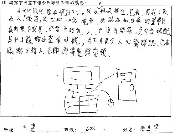 在大家完成最後一題活動心得的同時,原有4、5位同學舉手想上前分享,