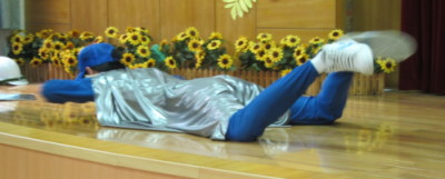 接下來向燕子們招招手,打個招呼,之後又在小女孩的傘上盡情的跳著踢躂舞,