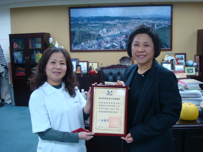 新店區王美月區長在開會中還堅持要抽空頒獎感謝狀