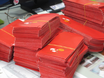 泰山輕建美油408瓶、由技嘉、盈嘉、主板、品牌各家集到810個技嘉環保袋還有810個春節紅包,