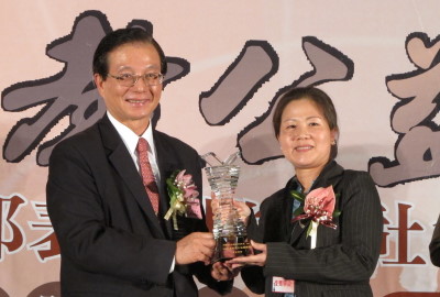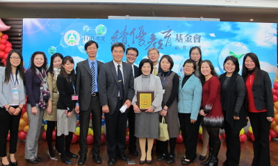 「技嘉教育基金會」榮獲評鑑的優等獎,由基金會周麗華副執行長代表受獎