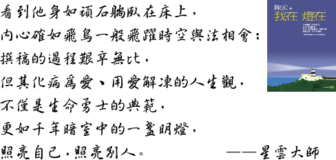 陳宏老師於1999到2007年之間以190,185字,創下「眨眼書寫出版最多字數」之金氏世界記錄,雖然疾病漸漸的癱瘓他的身體,全身不能動彈,口不能言,但是他沒有向疾病屈服,生病之後筆耕不輟,他說:他還有耳朵,可以聆聽世界上美好的聲音;有眼睛,可以看世上的事物,和表達他的感受,用寫作表達作為一個漸凍人的感受,同時表達出對生命的感受與熱愛。 |