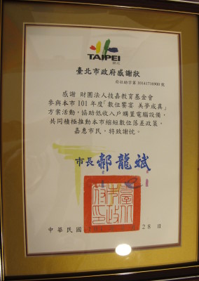 有了民間企業的愛心,給了經濟弱勢家庭的學子一張更接近數位生活的門票
