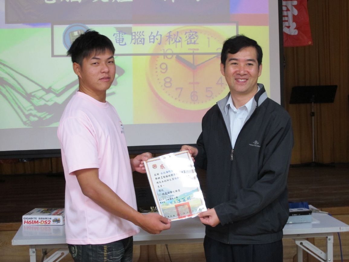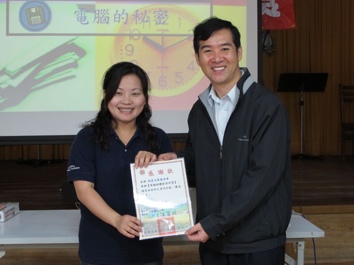 上完課之後, 上林國小還頒發感謝狀改前來講課的老師們!