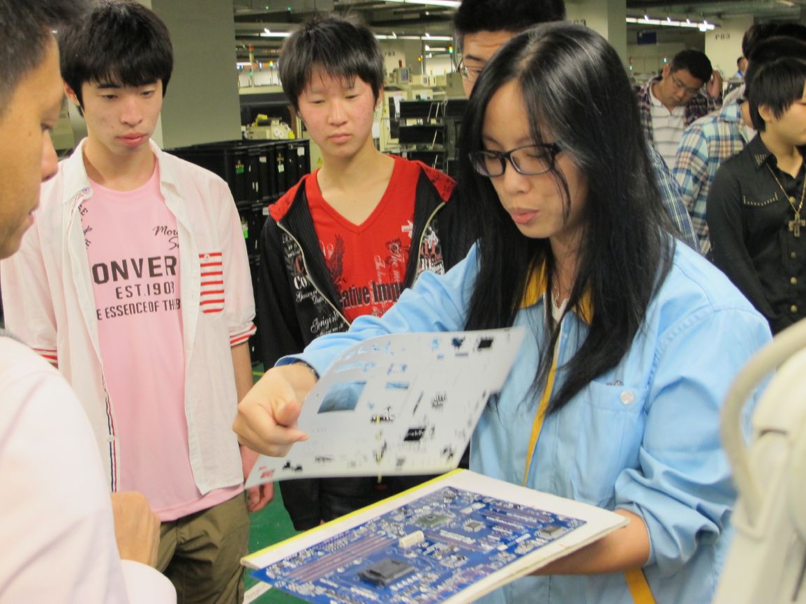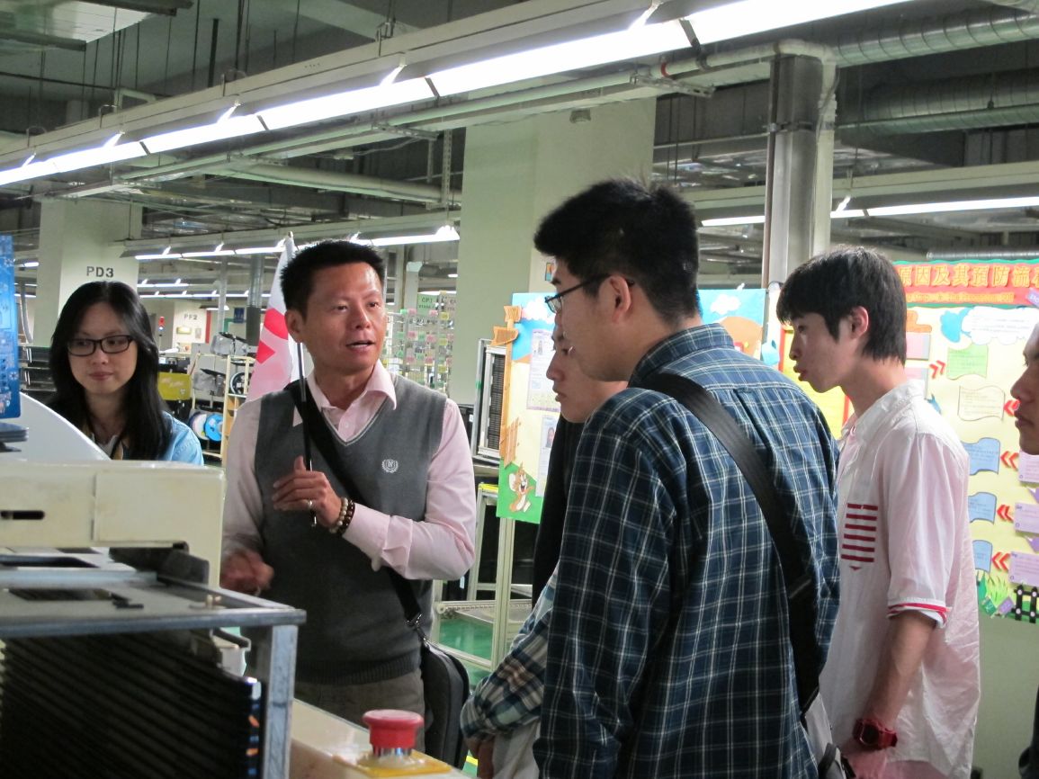 對技嘉和主機版產品有概念後,領隊&翻譯員將同學們直接帶到工廠,深入生產線參觀製作過程