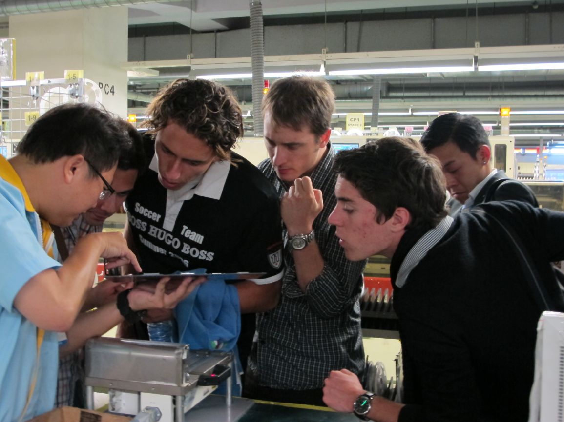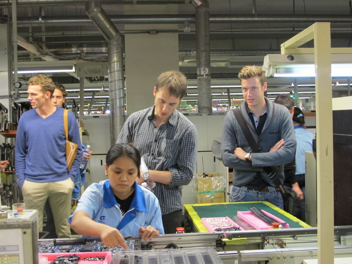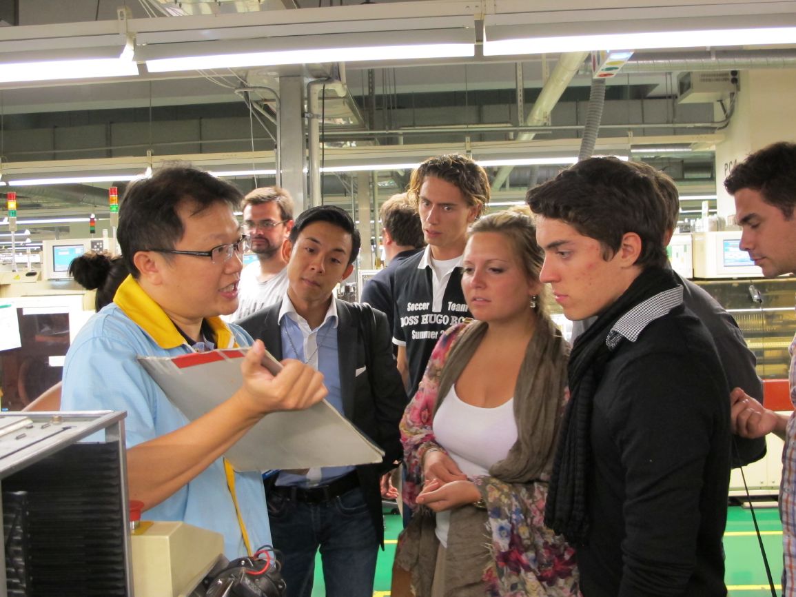 對技嘉和主機版產品有概念後,領隊&翻譯員將同學們直接帶到工廠,深入生產線參觀製作過程