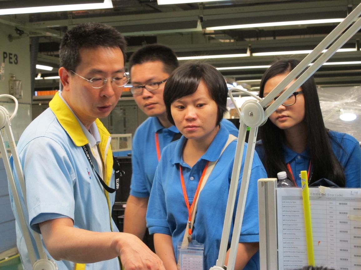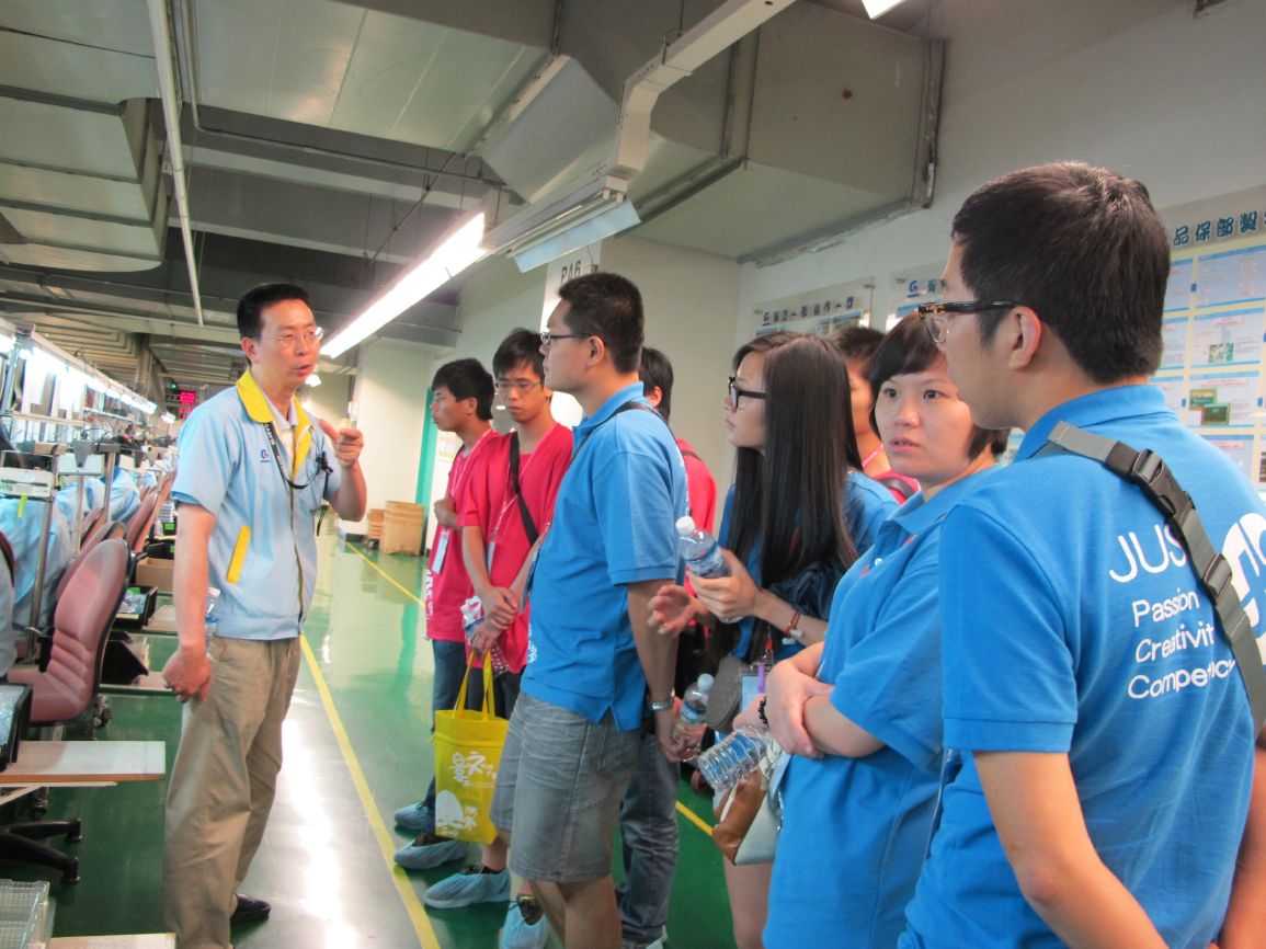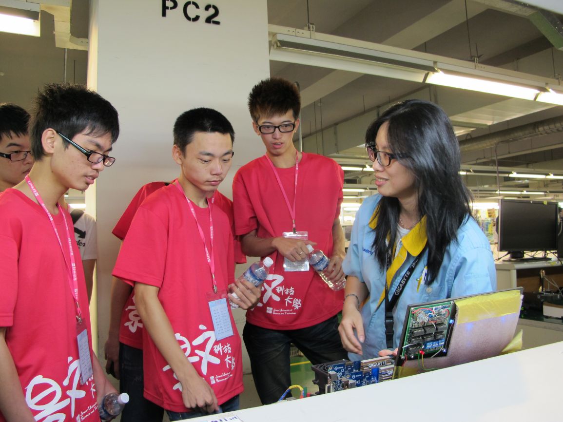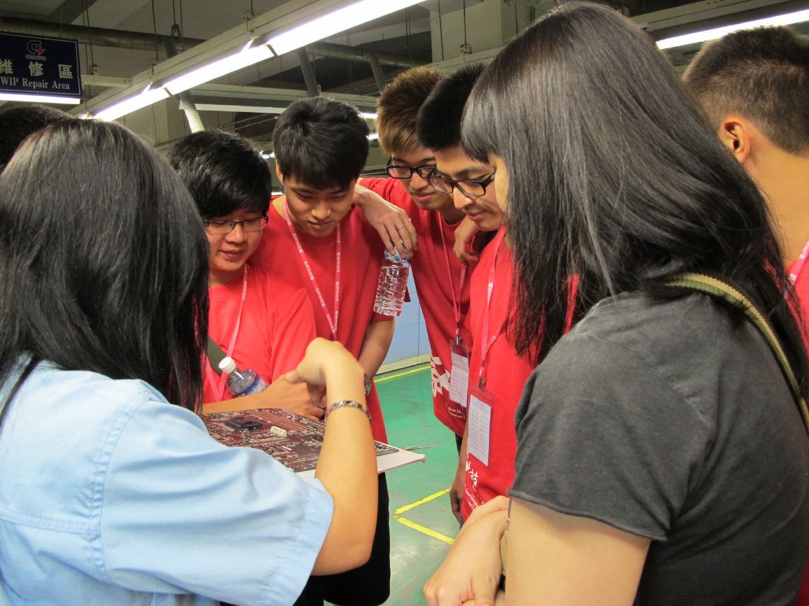對技嘉和主機版產品有概念後,領隊&翻譯員將同學們直接帶到工廠,深入生產線參觀製作過程