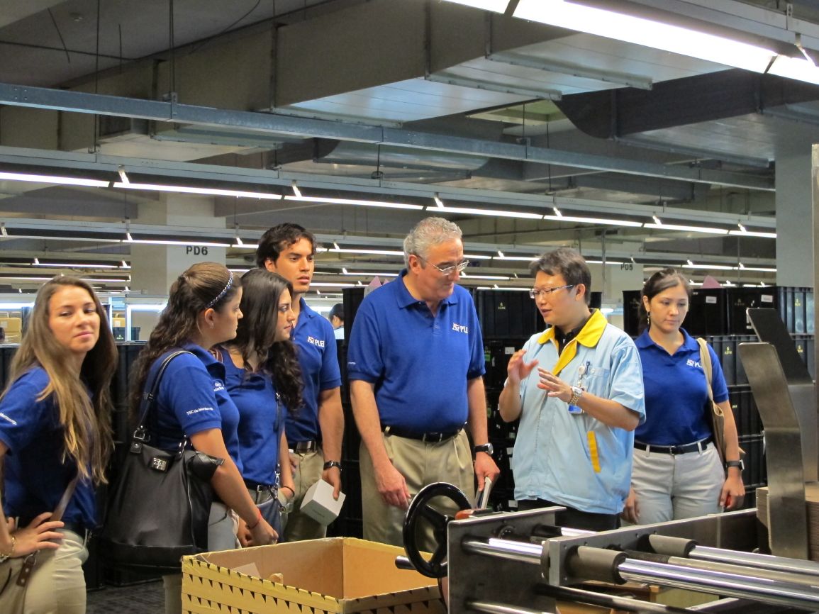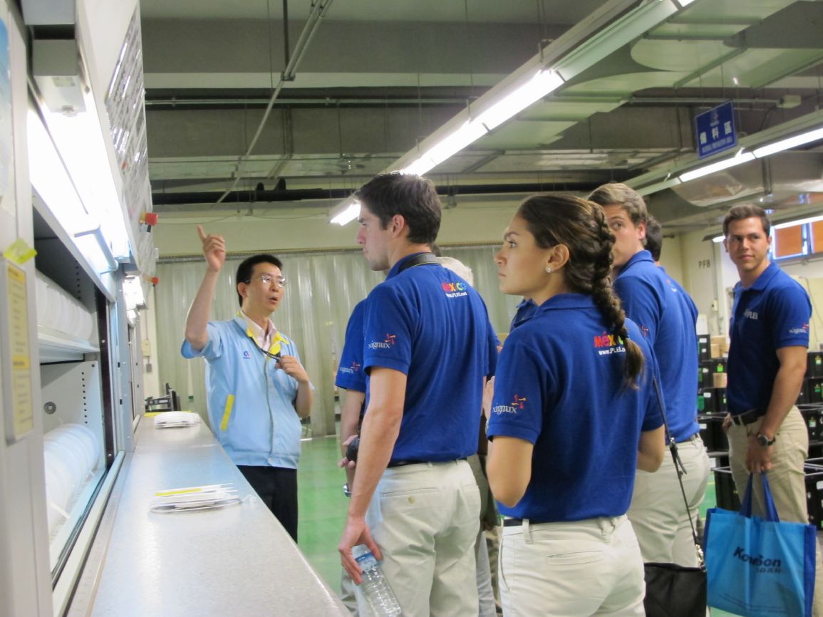 對技嘉和主機版產品有概念後,領隊&翻譯員將同學們直接帶到工廠,深入生產線參觀製作過程