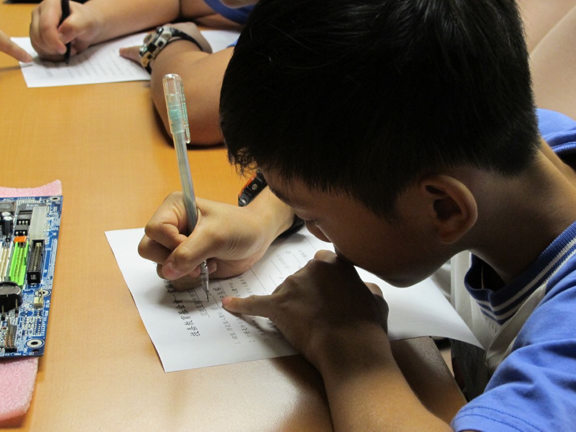 大夥兒有了頭緒便開始回想小惠老師剛剛教的步驟, 一人負責一個配件,
