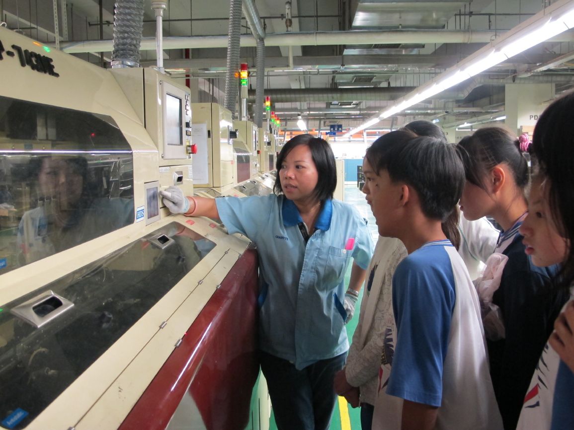 進入產線,各流程解說員熱情迎接來自嘉義的小小貴賓,