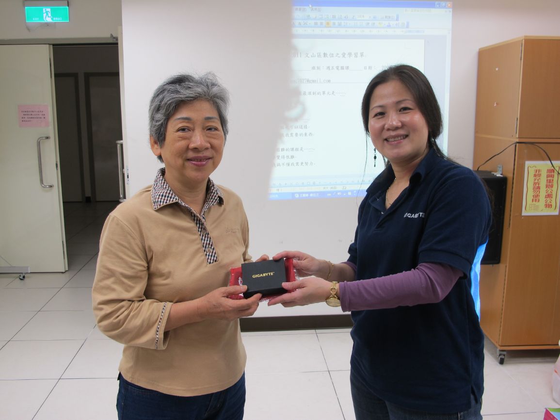 班長美琳: 本來就有使用電腦,里辦公 室的文書多辦由我協助撰打,但來上課更 清楚細微功能的操作,穩穩紮根。不過在 這裡最難得是與國中老師再相見,再續前 緣好幸福。 |