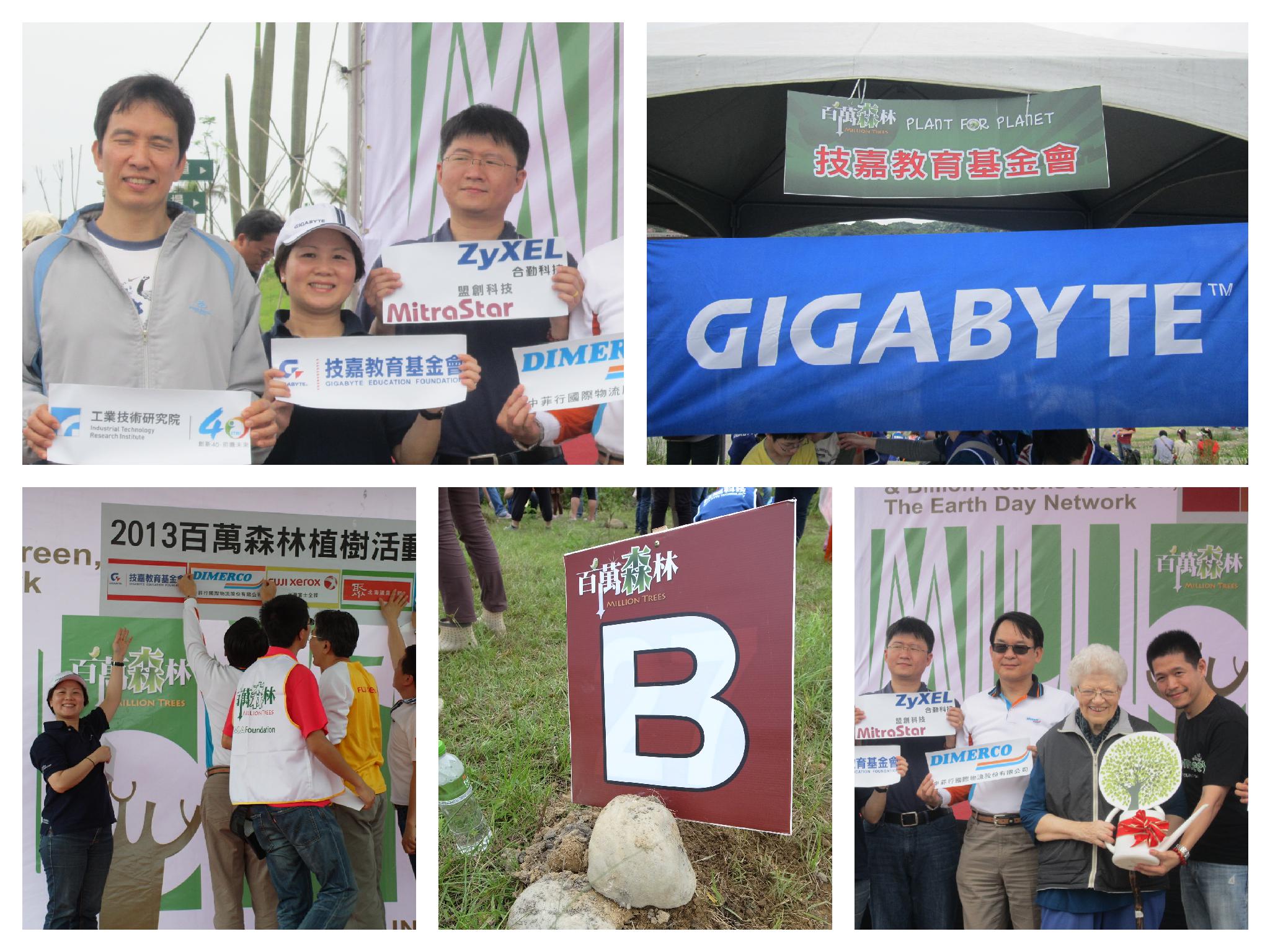 各企業代表將種樹的承諾貼在大會的活動看板,技嘉科技則由技嘉教育基金會周麗華副執行長