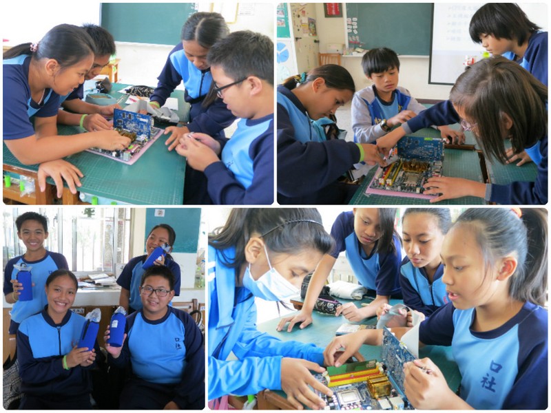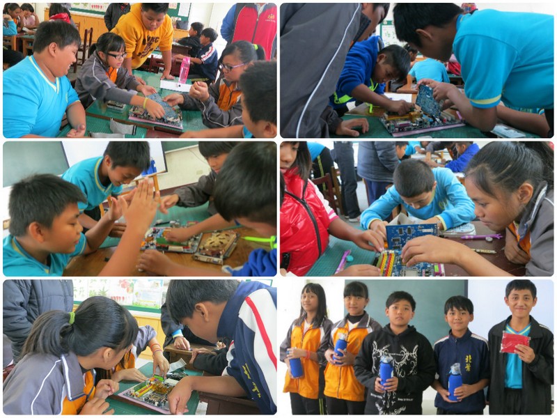 『科技到校』帶著主機板及週邊零件配備,如硬碟、光碟機、顯示卡、記憶體和CPU,